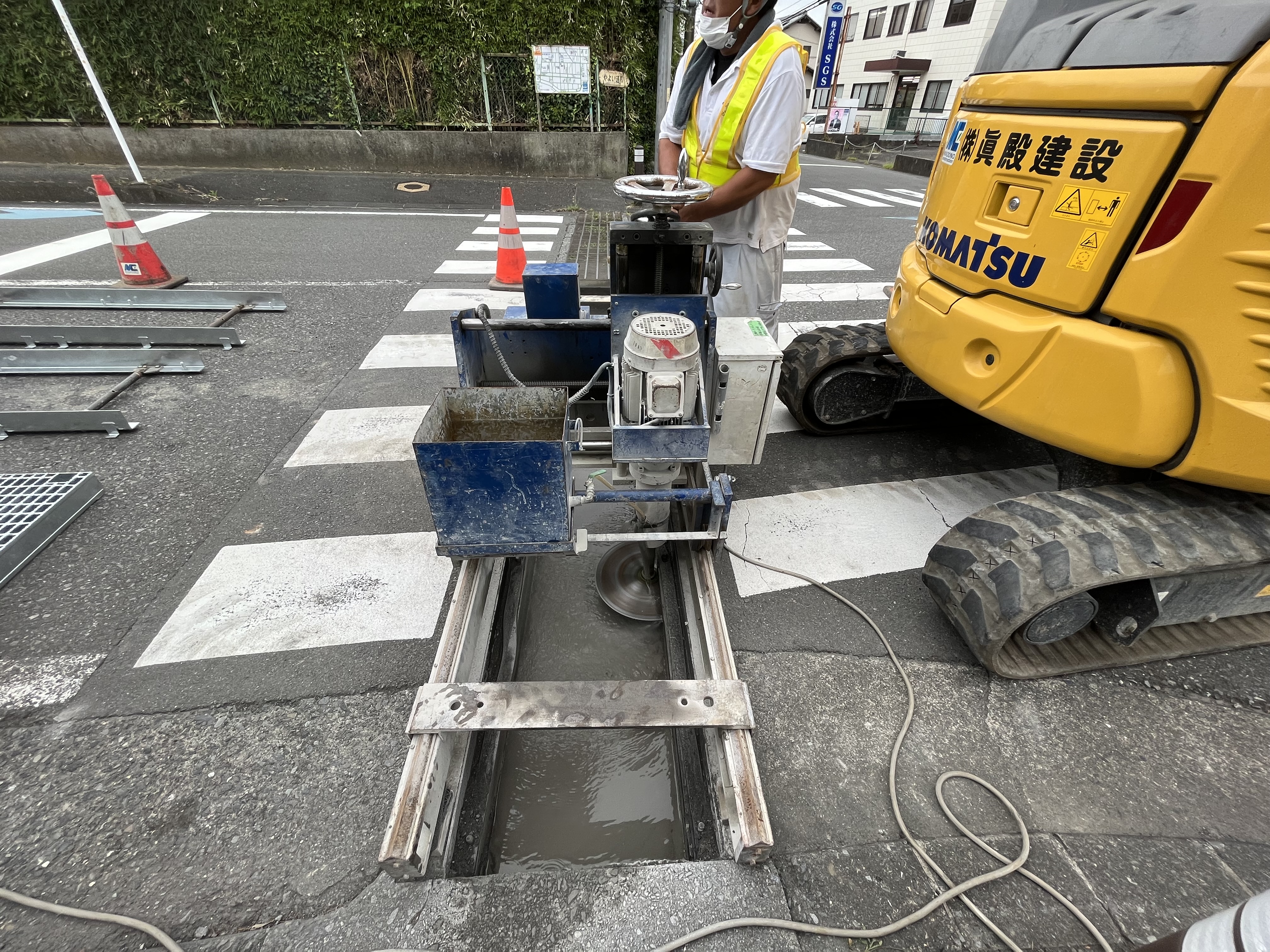 従来の側溝全体を取り替える方法に代わり、傷んだ上部のみを切断・修繕する革新的な工法。