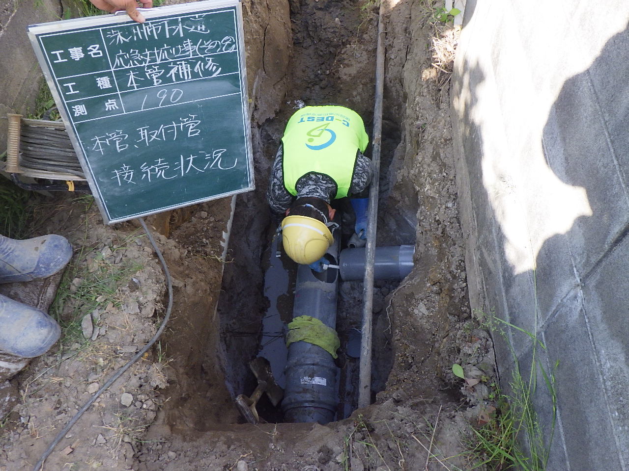 地震によって塩ビ管で敷設されていた下水道の圧送管が破損していました。破損箇所を新しい管に置き換えて接続し直しました。